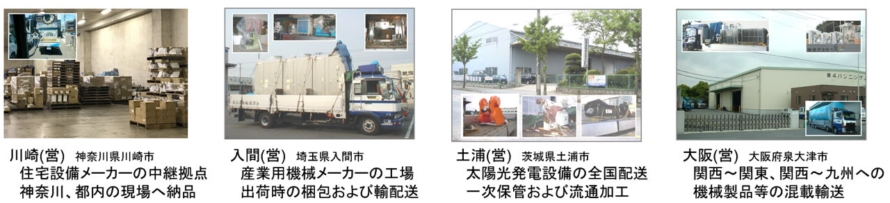 関西エリアと関東エリアでそれぞれ集めた貨物を幹線輸送して、各拠点から適時納品いたします。